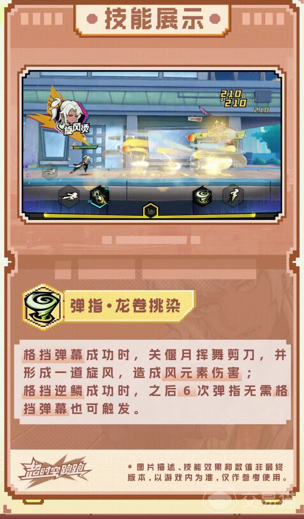 第4个是合纵旋风烫,在小队任意角色最后一格时光之力格挡成功时,就会召唤一道旋风,造成风元素伤害。该次弹指和所召唤的旋风必定暴击,该技能的触发频率非常高。这些技能效果使得关偃月成为了一名战力非常强悍并且续航能力出色的角色,帮助玩家在游戏中顺利进行各种战斗。当然该角色也比较讲究操作的技巧,尤其是各个技能之间的配合要非常出色,这样才可以打出节奏。