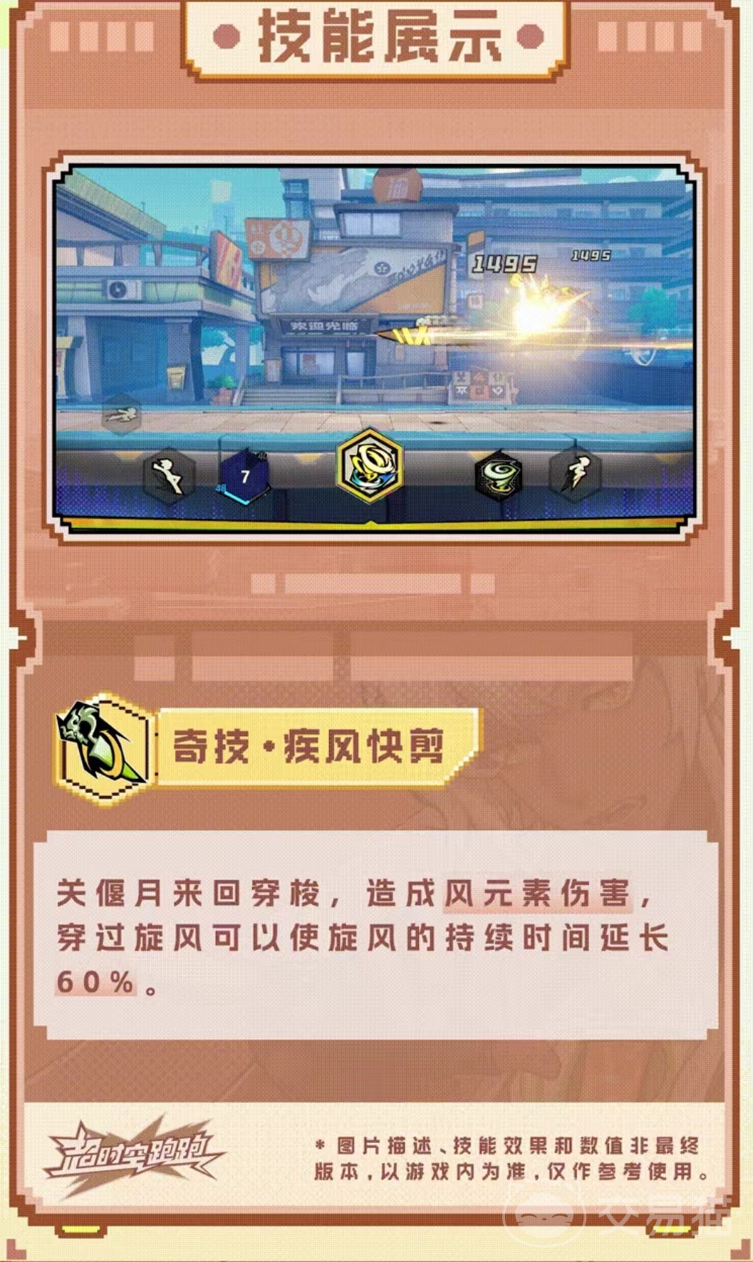 第2个技能是奇技疾风快剪,来回进行穿梭造成风元素伤害,如果穿过旋风,那么可以使旋风的持续时间延长。玩家也可以在使用龙卷挑染格斗弹幕成功,或者是成功触发合纵旋风烫时使用该技能,利用奇技穿过旋风,增加旋风持续的时间,叠加伤害非常出色。第3个技能是神通洗剪吹,召唤出大剪刀,形成一道巨型龙卷风,造成水元素伤害和风元素伤害。