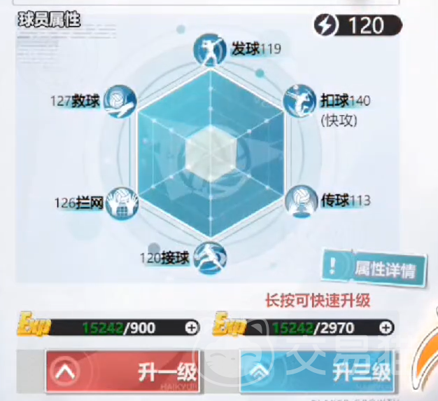 我们的队伍是由至少6名成员组成,排球的队员们每一位都有着自己不同的位置,同时他们的属性,能力和技能都是不一样的,玩家们需要先弄清楚他们的技能,这样才好进行更好的搭配。我们的关卡胜负取决于双防的比分,我们如果比分高的话便可以获取胜利,反之则是我们会输掉比赛。游戏每一个关卡都有着星级条件,三星最高,零星最低。每一关的三星条件基本都差不多,有的关卡的条件会有所不同,但是总体来说都是相差不大。