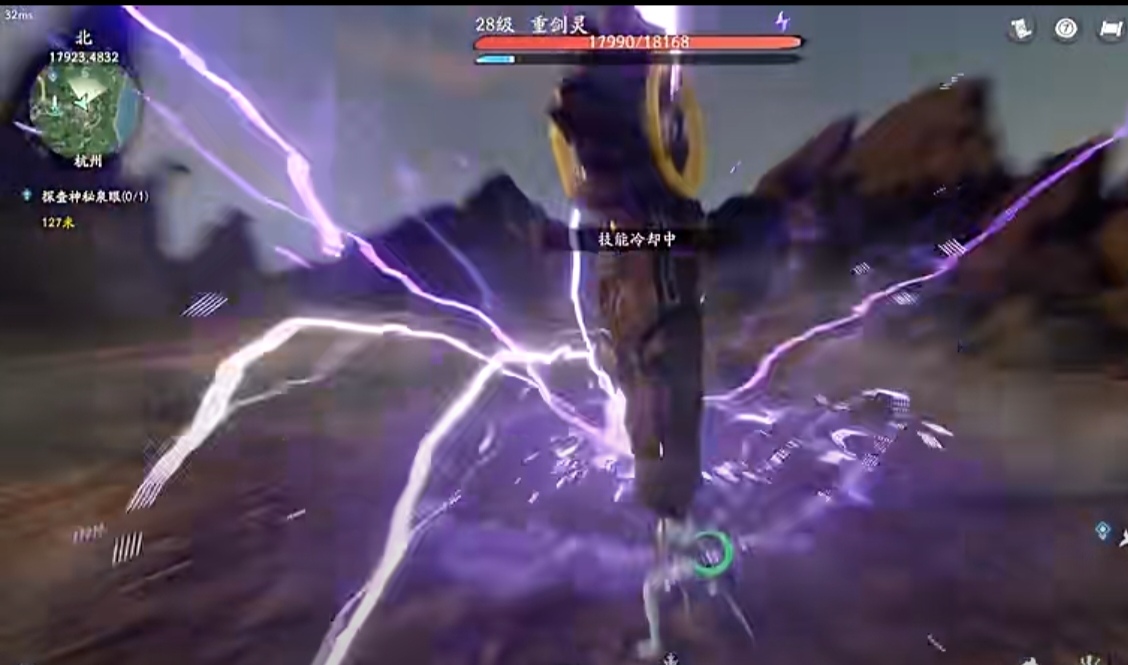 重剑灵所在的位置是杭州城郊外的散华剑墟处,玩家们在找的时候如果实在是找不着位置,可以打开杭州城的地图,然后找到地图上带有一把剑标志的位置,在这个位置的上方有一个小圆圈,这个小圆圈就是重剑灵所在的位置了。