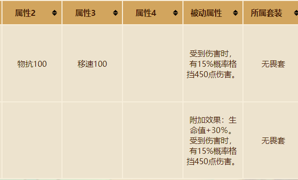 而无畏套装中的铠甲也是一个非常不错的部件,在穿戴之后,首先是可以为自身提升1000点的血量,其次它还有着额外的附加效果,首先就是可以提升30%的血量,并且在受到伤害的时候有15%的概率挡掉450点伤害,这一点和鞋子是一样的。虽然说从属性加成方面来看,衣服比鞋子要少一点,但衣服能够提升更多的生命值,也是非常适合比较脆皮的玩家的。