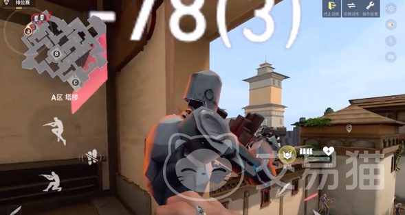 第2个点位是在a小柱的边上,在瞄准特定的位置之后释放冰箱可以直接跳上箱子。跳上箱子之后就可以达到a小的敌人,另外跳上箱子的另一边还可以打到a大的敌人。这一个点位对于两个不同区域的敌人都可以展开控制。
