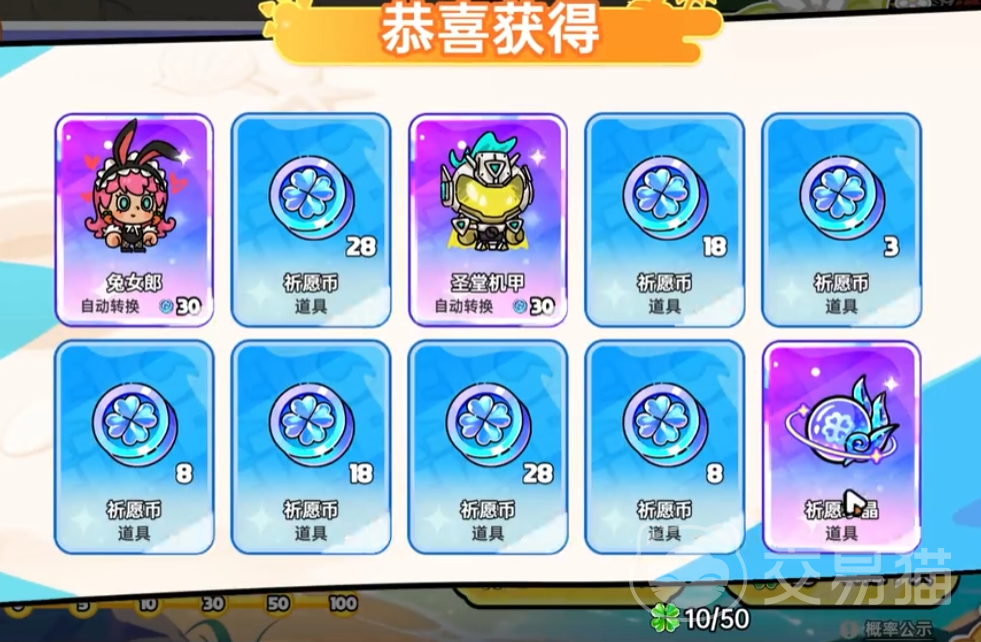 当小伙伴们收集够1000个祈愿币之后,就可以兑换出一块祈愿水晶,如果收集齐5块祈愿水晶,那么就可以直接兑换法袍了。也有小伙伴担心自己会很难兑换道法跑,那么其实也无需担忧,因为如果你在抽奖的时候不小心抽到了重复的道具,那么系统将会自动把它们给转化成祈愿币,根据抽到重复道具的珍贵程度,所获得的祈愿币数量也会有所不同。甚至会有一定的概率直接获得一块祈愿水晶哦。