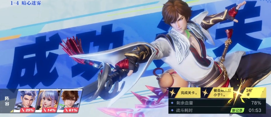 在与BOSS的激战中,大家也可以适时切换一些有防御的角色,保证队伍有足够的生存机会,这里推荐使用夏侯惇,他有强大的防御能力抵御BOSS的反攻,并继续使用技能打出超高爆发伤害,当成功击败BOSS后,又会出现一些小怪,这时只需随意清理即可,继续前行后,大家会触发一些跳跃道具,它们能帮助你快速穿越复杂地形。