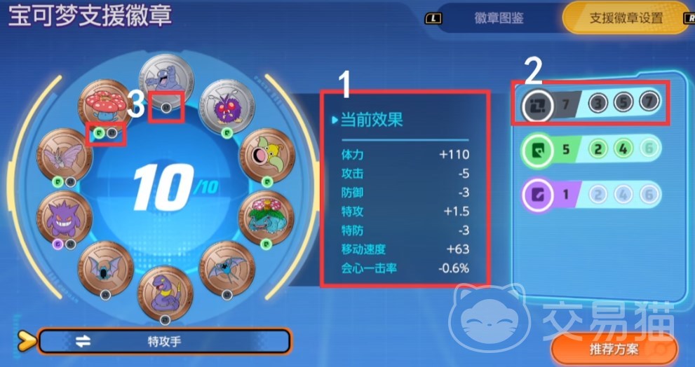 特攻的一般是黑+绿,物攻的以凑6个棕色为主,像尼多王尼多后的紫色还可以加特防,穿山鼠穿山王可以带加会心的,有一些棕色的徽章会减少特攻,可以给物攻输出的宝可梦。防御型的其实没有特别适合的徽章,并不好凑。