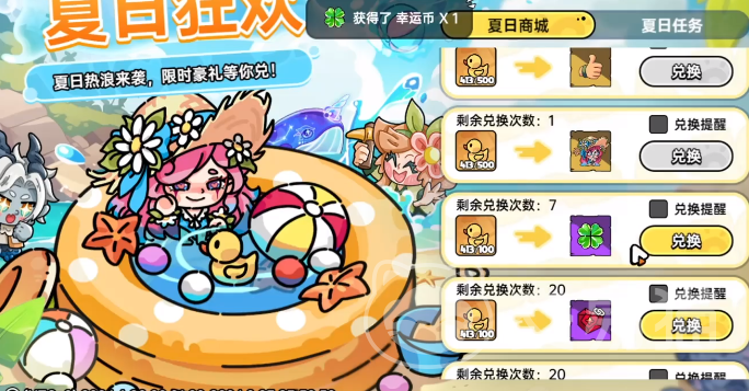 想要参与夏日祈愿活动,先需要在绑定的夏日狂欢活动中完成特定的任务,兑换幸运币,根据任务的不同,可以兑换的幸运币数量也不一样,有了幸运币之后才能去夏日祈愿里参与抽奖活动,只要通过抽奖集齐了特定的道具就可以兑换这个坐骑,玩家需要多去完成特定的任务,这样才能积攒大量的抽奖机会。