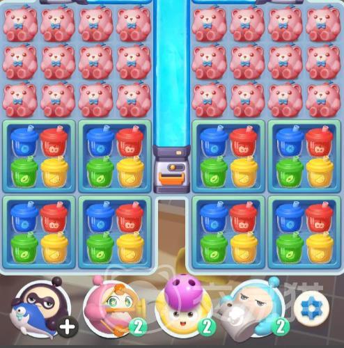 这关的过法也不难,首先要把上面的红心和黄色气球进行交换,然后消除方块,缩短下方的蓝色机关,接着交换蓝色三角形和红心,即可获得特殊道具,最后点击右侧的绳索,观看小黄逃离的动画即可通关。