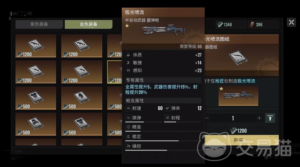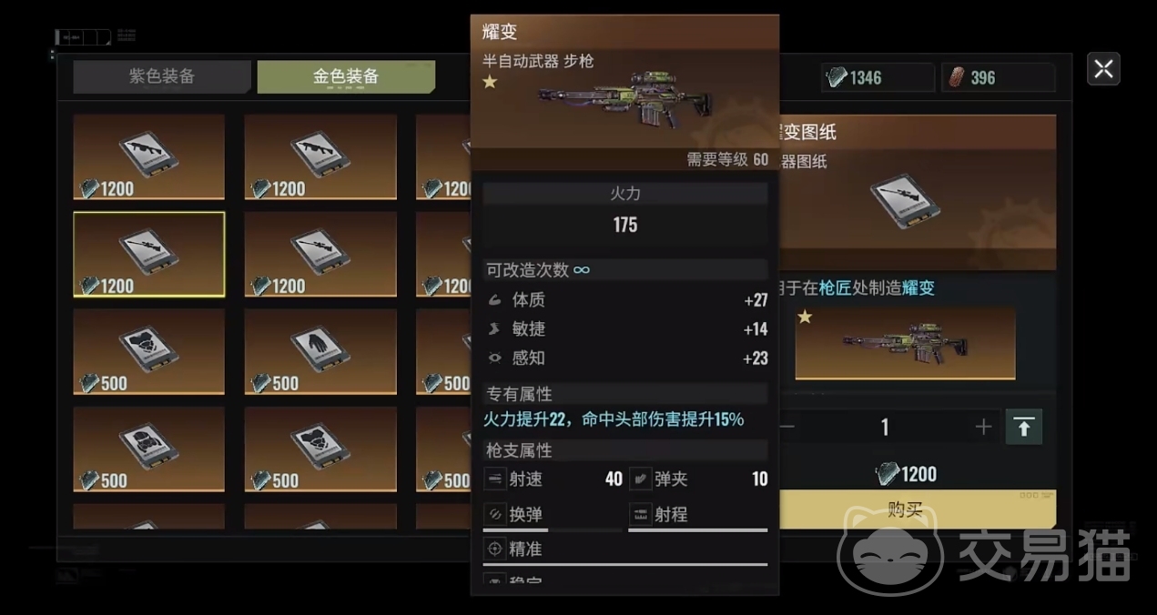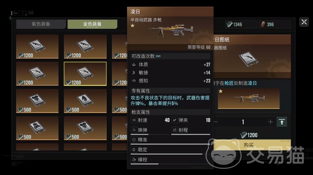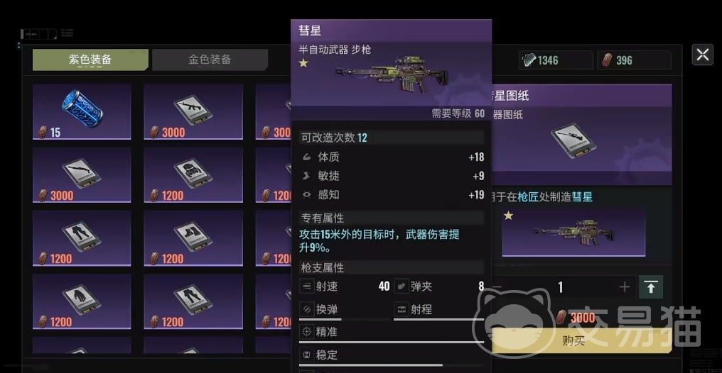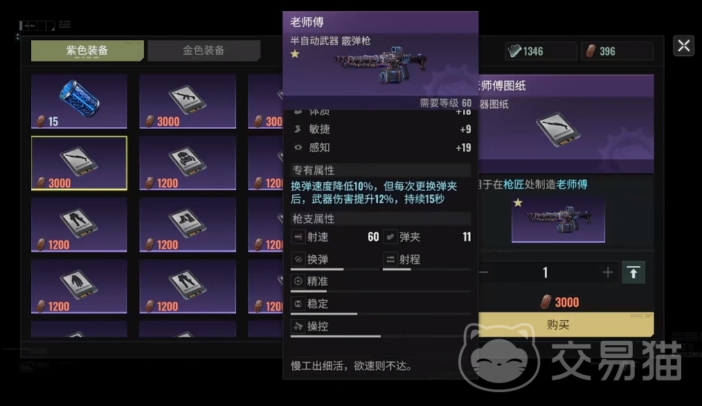 若是兑换金色图纸的道具数量不足,可先换紫色武器老师傅来使用,该武器虽然降低了换弹的速度,但换弹完成后的伤害远高于40武器,能应付60级后的副本。