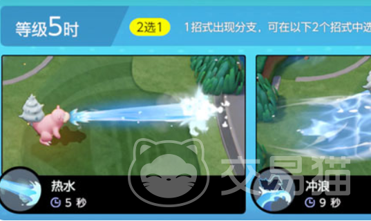 呆河马的一技能是水枪可以相对手喷出猛烈的水流,击中敌方宝可梦之后可以使其移动速度降低,长按可以扩大技能范围,增加伤害,水枪可以升级成热水和冲浪两个技能,玩家可以根据侧重选择方向,热水技能强化之前的攻击方式和伤害,可以降低敌方的移动速度,冲浪技能更改了伤害方式,使用后会对敌方宝可梦造成击飞效果。