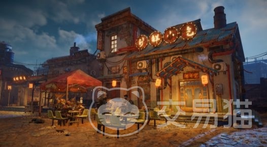在这个被辐射污染极为严重的废土世界里面还加入了中式元素,你在这里可以很多带有中式风格的建筑,就连角色设定上面更是有着浓烈的国风元素,穿着旗袍的的老板娘,斧头帮每天必拜的关二爷等等。