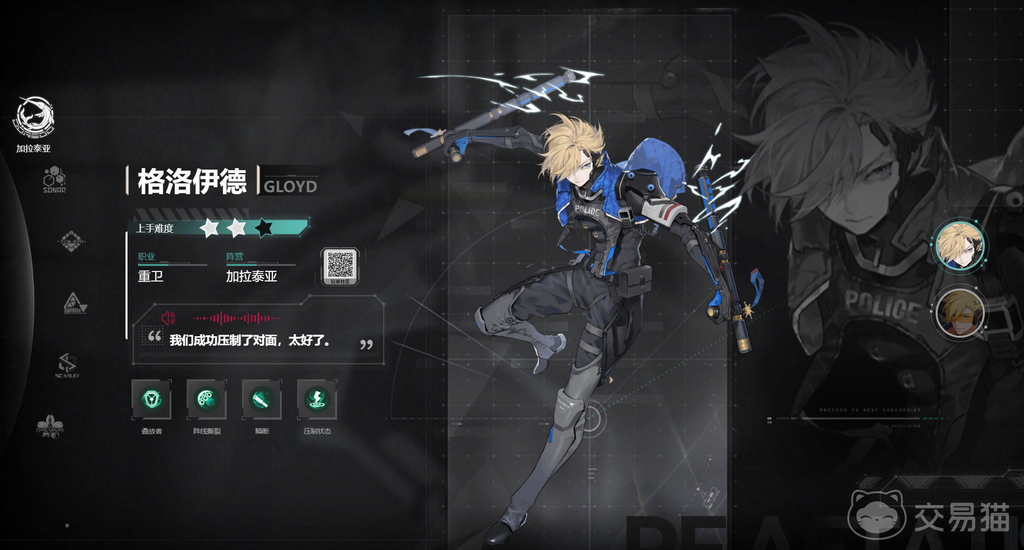 功能芯片方面,应答装甲、攫取生长、击破兼并和双伤害缓冲都是不错的选择,它们可以在战斗中提供额外的辅助。格洛伊德的1技能“阵线斯裂”是位移和控制技能,可向指定方向发起冲撞,对敌人造成物理伤害并击退。2技能“瞬断”则是缴械技能,可以在前摇之后打出前方aoe区域,造成物理输出伤害,同时还会控制命中敌人1.2秒。大招“压制状态”则以自身为中心展开警戒区域,增加护甲和攻速,并对敌人造成额外伤害。在团战中要看情况来释放这些技能,打出连招效果。