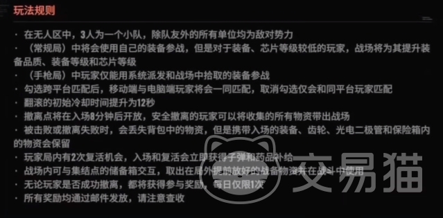 在无人区模式下玩家是组队模式,下午的常规局是3人小队,玩家可以通过匹配的方式来组件队伍。组建成功后就能进入无人区。无人区是能让玩家获得大量徽章的玩法模式,不过需要队伍成员之间有一定的配合,需要玩家逐步清理小怪,最后清晰区域小boss,这样才能最大化的获得足够多的徽章。