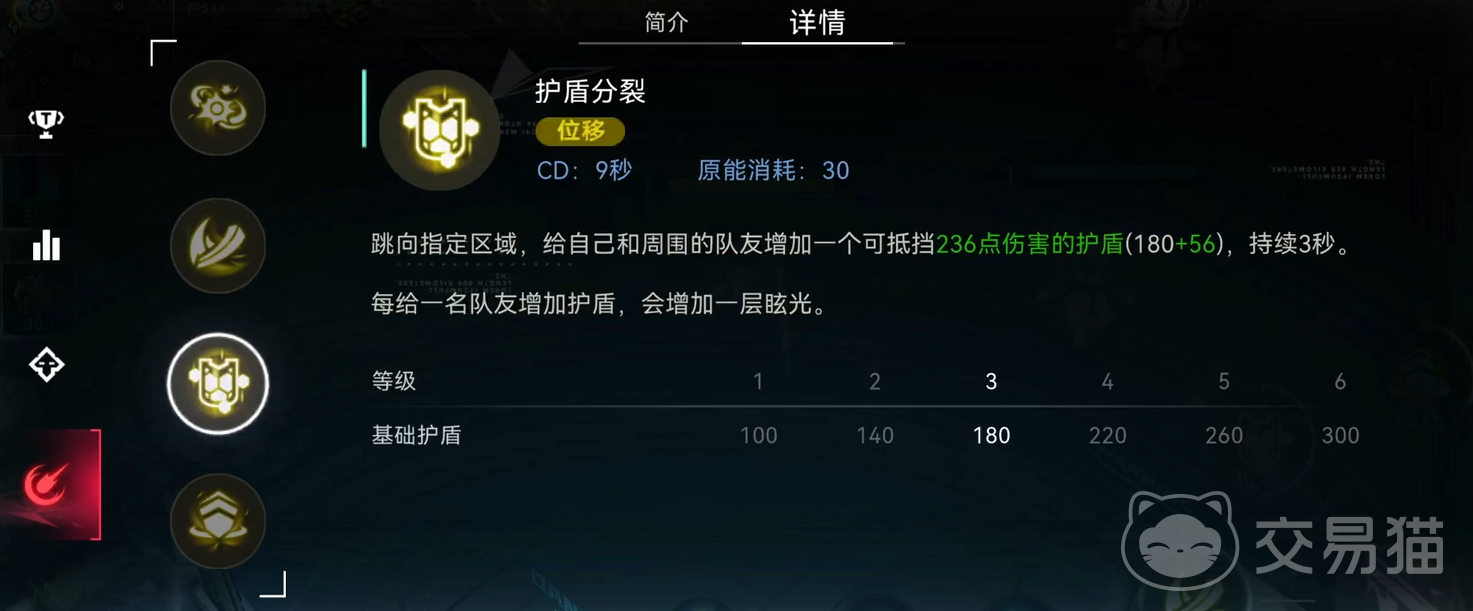 二技能叫做护盾分裂,可以让他跳到队友的身边,并为队友套上一个护盾。每次给队友套护盾都可以增加一层眩光,所以大家想要眩晕敌人,可以利用技能以及普通攻击,以此快速致晕敌人。