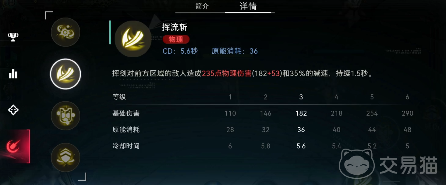 他的主动技能叫做挥流斩,可以挥动大剑并对前方的敌人造成高额的物理伤害,并附加35%的减速,能够持续1.5秒。是个不错的控制技能,用来主动留住对方的射手或者法师更加方便,又能快速减少对方血量。