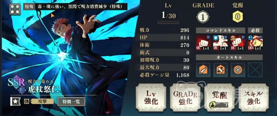 咒术回战手游虎杖悠仁怎么样 咒术回战幻影夜行虎杖悠仁技能一览