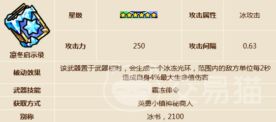 武器可以搭配凛冬启示录,该武器能够生成一个冰冻光环,对范围内的敌方单位造成伤害,按照自身的最大生命值百分比来附加。凛冬守望也可以,普通攻击命中敌人时会造成减速效果。