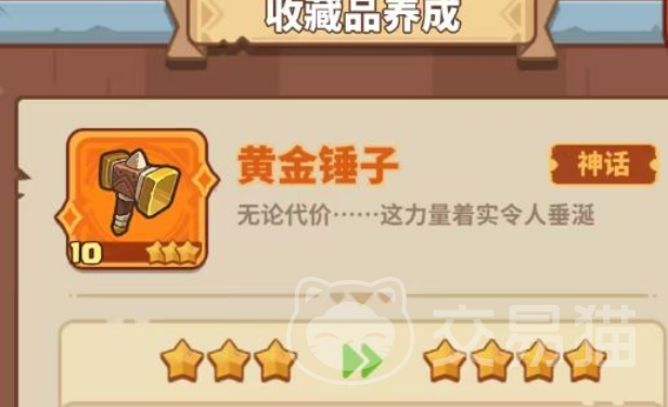 在游戏里玩家可以选择的道具很多,除了传统的道具用来提升这些角色的能力之外,在游戏里还会有比较独特的一项设定,就是会有一个名为黄金锤子的收藏品,这个收藏品每一个玩家都有,只不过最初期黄金锤子几乎无法发挥太大的作用,需要在后期星级得到提升之后才能帮助英雄角色提升攻击能力。