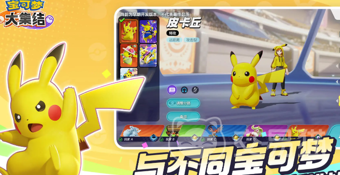 宝可梦大集结对于宝可梦的选择也尤为重要,宝可梦分为攻击型、辅助型、防御型、敏捷型和平衡型,每一个类型的宝可梦都有特殊的技能,新手建议选择攻击型的皮卡丘或者防御型的卡比兽来体验游戏,皮卡丘适合在战场上干扰敌人,走位非常的灵活,卡比兽血量非常高,且有控制技能,可以在战场上随意的跳动,这两个英雄都是非常适合新手玩家来体验的。