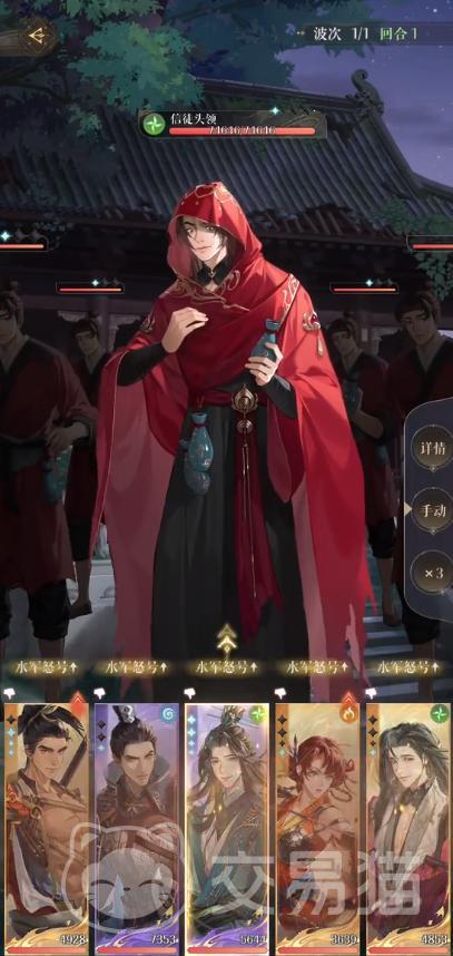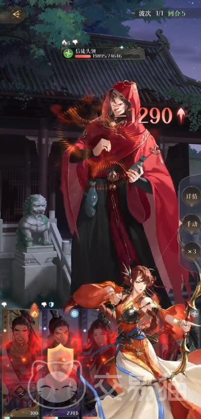孙尚香队阵容:孙尚香+吕蒙+颜良+陈登+郭嘉。孙尚香是本次地宫活动限定卡池的新角色,玩家可以通过抽卡获得。使用她通关会有额外40%的奖励。第一和第二回合,使用陈登广陵散的技能,增强吕蒙的能量。幸运的话可以刷出变身,在第一回合就可以把回复兵清理掉,其余角色在前三回合有大招就放。到第四局的时候信徒头领会放大招,全员释放盾牌同时注意防御。第五回合会出现密探扛不住伤害被放逐,玩家多注意吕蒙和孙尚香的状态,还能输出就可以赢。