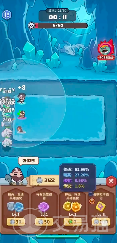 除此之外,该款游戏作品还有一大有趣内容,它可以实现,更有趣的英雄召唤玩法,通过游戏当中的召唤按钮即可使用英雄完成buff叠加,而且在相对应的怪物对抗过程当中还可以解锁合成体验,玩家通过将普通英雄角色完成合成之后,可以拥有更加强劲的英雄角色来抵御重重困难关卡。