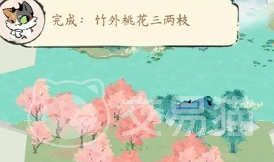 第二个是【苏轼】的解谜任务,“竹外桃花三两枝”,玩家们返回第一次做任务的桃园当中,移动三个桃树或者竹子就可以成功解锁了!“春江水暖鸭先知”也是非常的简单,玩家们在地图中选择一个带有水元素的区域,然后把带水的区域移动到小岛的前方就可以解锁了!