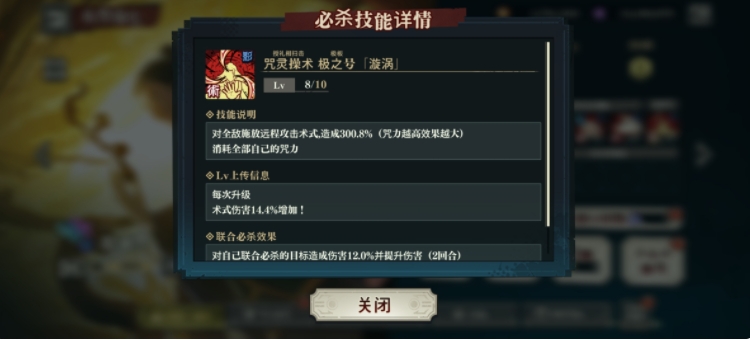 夏油杰他的第二技能不仅能够对敌方单体造成高额的术式伤害,还能根据自身的咒力值赋予敌人负面效果,这使得他在队伍中既能担任辅助角色也能成为输出核心,这也是他非常明显的优势,当夏油杰的咒力达到230时,他的二技能将使敌方单体在接下来的三回合内受到的体术伤害降低,而当咒力进一步积累至240时,则会额外增加敌方受到的术式伤害。