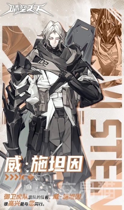 斯特·里希特,代号桫椤,自幼对文学与戏剧怀有深沉热爱,梦想成为文坛巨匠或舞台之星,然而家庭巨变迫使他放弃了艺术之路,转而投身军事学院,以优异成绩毕业后,顺理成章地加入了御卫虎队,成为了帝国麾下的一名精英战士,他对帝国忠诚不渝,其形象设计中大量运用蓝色元素,透露出一股不可侵犯的冷峻气质。