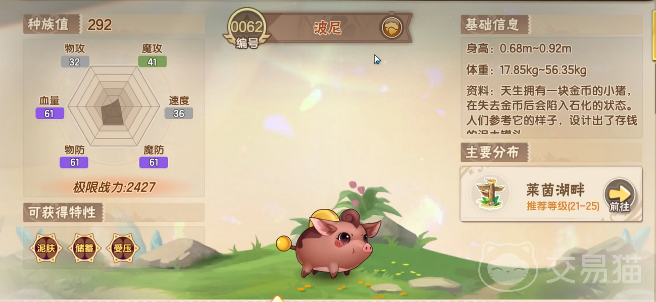 一旦你成功捕捉了波尼,这只小猪就会出现在你的宠物列表中。它不仅外表呆萌可爱,还拥有独特的技能,特别是它那会吐金币的本领,绝对让你爱不释手。接下来便是培养波尼的阶段,通过不断升级和进化,你可以让波尼变得更加强大。每个宠物精灵都有独特的属性和技能,而波尼的角色定位也是十分有趣的,不仅能为你提供经济支持,还能在战斗中助你一臂之力。