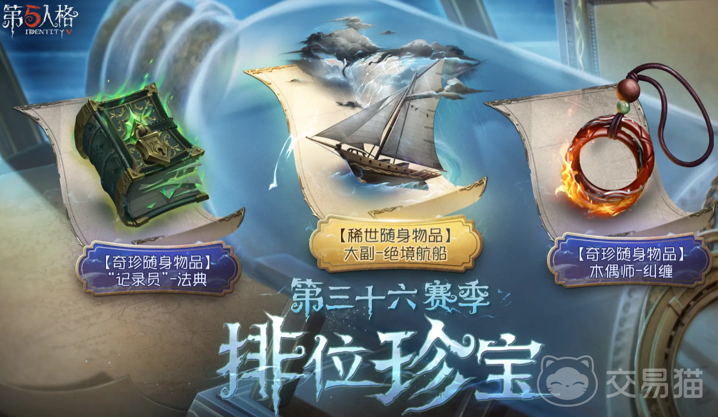 接着来介绍下排位珍宝的奖励,目前已确定为稀世随身物品大副-绝境航船、奇珍随身物品木偶师-纠缠和奇珍随身物品“记录员”-法典,三十六赛季的皮肤奖励也已经正式公开。