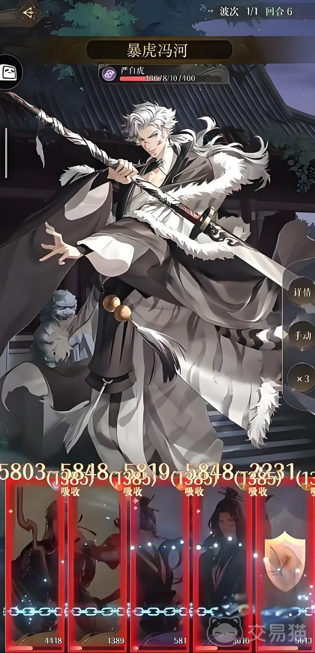 首先完成地宫35层挑战获得的奖励有115个古玉还有5000金币和珍贵的阴符资源。三星通关的要求是10个回合内通关,死亡或者被放逐的密探少于三个。这一层挑战的敌方boss是58级阴属性的严白虎。他的技能特效是拥有高额的免伤值,技能会提升攻击力,典型的高防低攻龙盾角色。本关限制密探等级到40,但相应给全体生命值提升15%,攻击力提升15%。