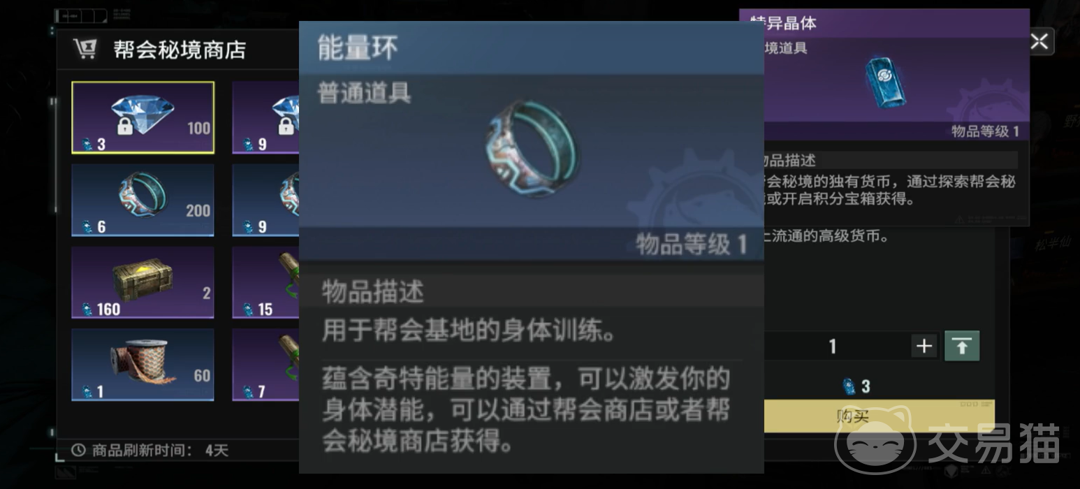 完成秘境任务后,不要忘记手中的特异晶体。这些晶体不仅是帮助你提升实力的关键,还能在情报员处换取稀有道具,其中最值得兑换的道具当属“能量环”。这种道具可以在基地内的训练师阿龙处使用,消耗一定数量的能量环和经验,提升你的属性,使你在末世中生存得更加游刃有余。