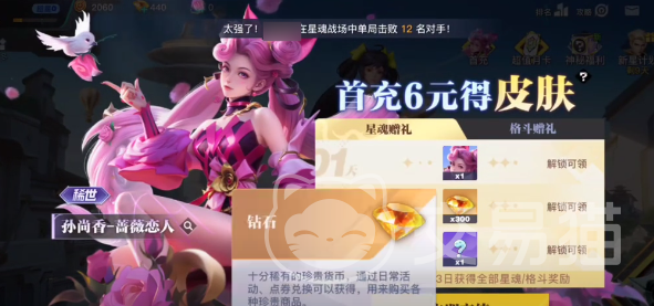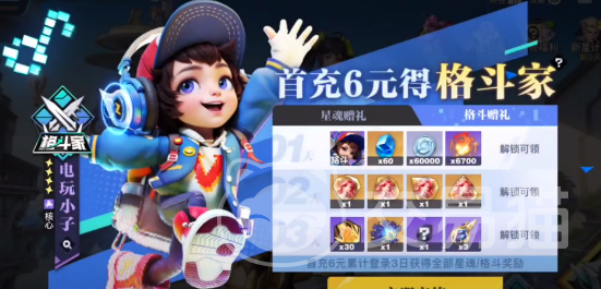 无论是格斗玩家又或者是星魂战场,玩家都可以选择首充6元,性价比还是非常高的。在首充6元之后就能得到永久的英雄皮肤。例如在首充6元之后就可以解锁孙尚香蔷薇恋人皮肤,此外也可以得到格斗家电玩小子皮肤。