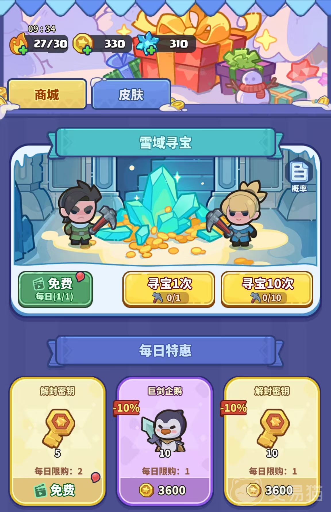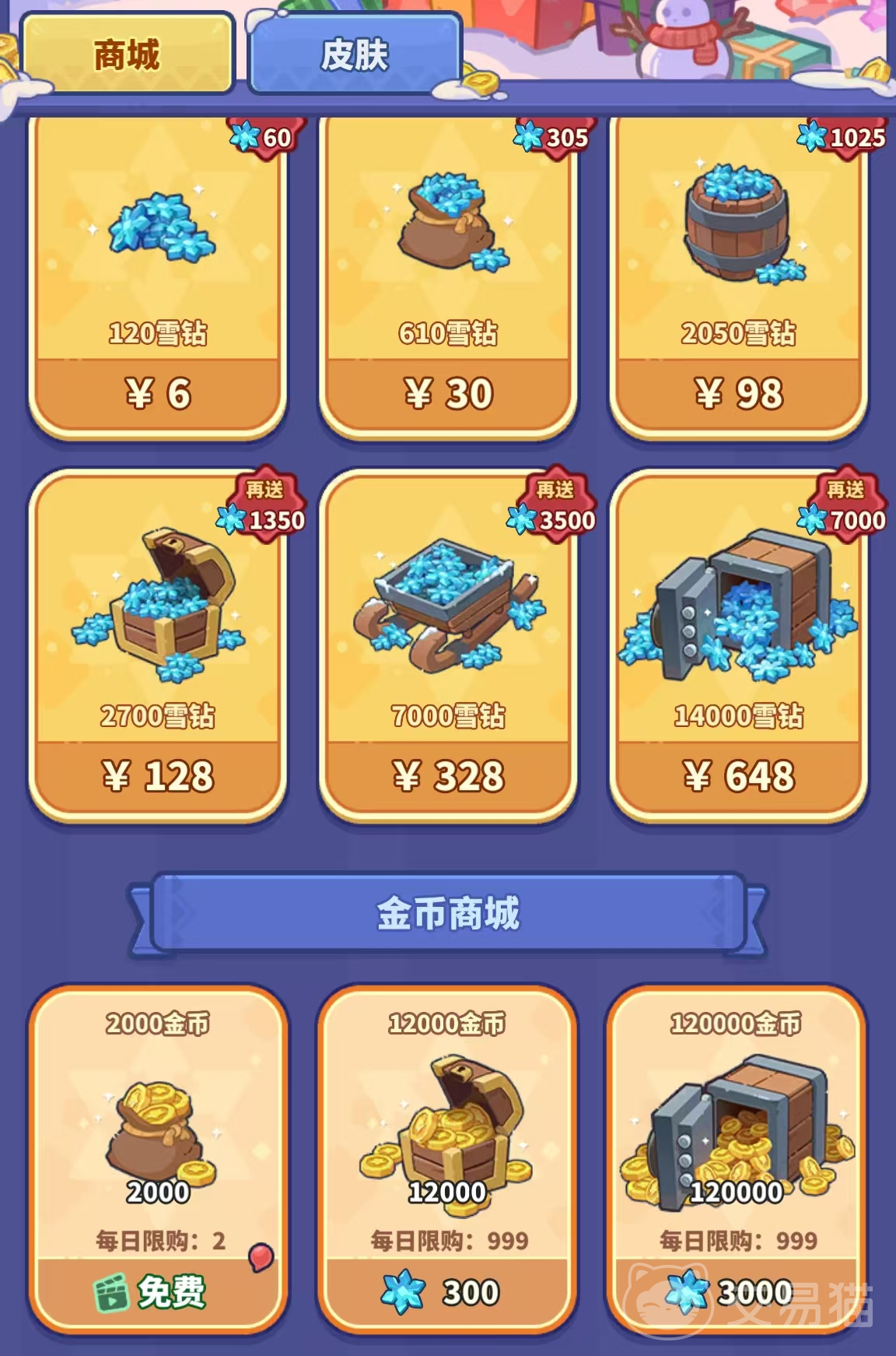1、商城获取:每天有2次免费的金币商城兑换,每次可以获得2000点金币,这个还是很有必要换取的,没有难度要求只需要看一看广告就行了。当然如果是氪金玩家的话,也可以直接使用雪钻来兑换金币,这个效率是最高的。其次就是雪域寻宝了,每天也有一次免费的寻宝机会,开启后可以随机获取道具奖励,里面就有金币哦。