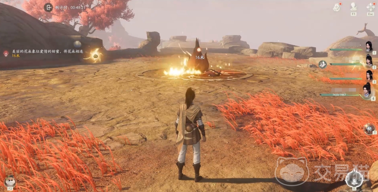 应桃楚的要求,玩家们将同她一道与怜香展开战斗,解救闻剑声。第一次将怜香击败后,玩家们能找到怜香的花苞,破坏后会进行第二场战斗。怜香的强度与精英怪类似,并不是特别难。完成后继续向前完成解密,待通过石桥后与怜香真身进行作战,要注意本次战斗要比前两次难上一些。