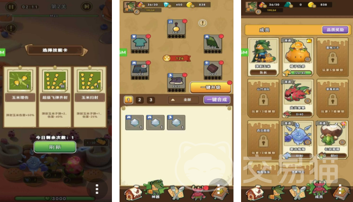随着游戏闯关不断的深入,玩家将会解锁更加强大的组合,也会获得神器,将这些神器有力的合成。玩家还需要收集金币,需要培养水果。玩家不管是过度的忙碌,还是在忙碌当中寻找放松选择,这款游戏能够让玩家在体验游戏的时候挑战自我的同时慢慢的满足自身的需求。