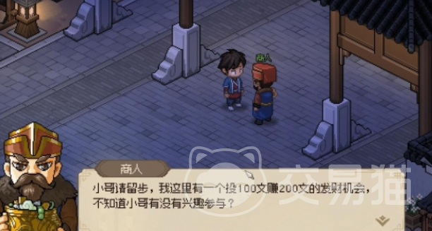 通过商人想要快速的赚到钱,可以采用存档与读档的刷钱方式,投资之后等待12个时辰,可以选择先存档,然后通过读取存档反复在与商人交谈,以此来实现刷钱的效果,在交谈中还有一个选项是我对钱没有兴趣,等待12个时辰后再找到商人,有机会触发游戏中的一个漏洞,可以使用10贯钱来获得高额回报的投资,这个方式也是可以通过存档和读档的方式来回刷的,这样既提高了投资的回报率,也降低了风险。