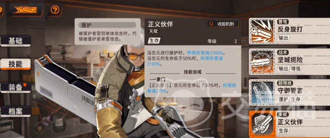 忠元:拥有较强的减伤效果,还有单体保护能力技能,可以直接援护队友,而且在三个回合内都有效果,所体现效果还是很不错的。