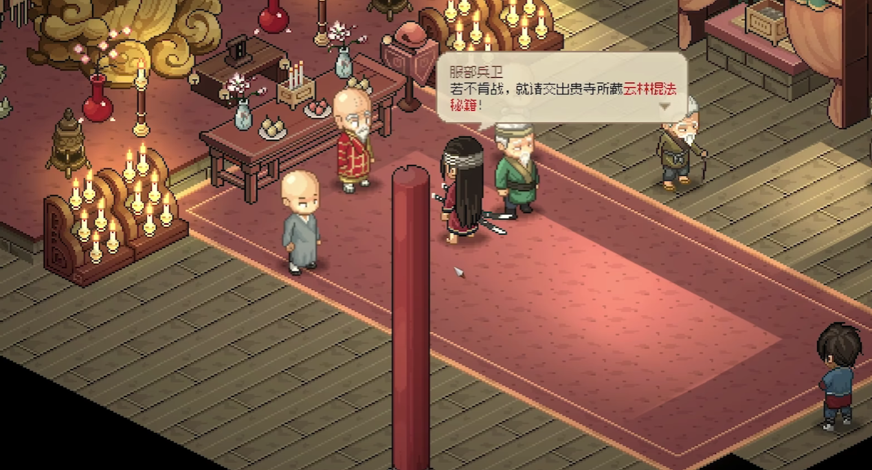 最后玩家前往通天塔,找到楚狂生,楚狂生并不能够通过提升好感度的方式加入到玩家的队列当中,玩家必须要帮助楚狂生完成特殊任务,此时如果玩家的背包始终有金色属性以上的心法,也可以通过和他交换物品来获得楚狂生进入到队列的机会,在完成了这些上述条件之后,玩家就能够开启三教传人的任务了,任务的过程当中,玩家需要不断地在三个势力当中奔波,最终玩家会取得特殊的任务奖励云林棍法心得。