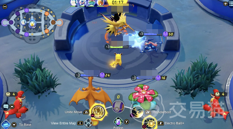 戏地图分为多个区域,包括得分区、野生宝可梦区和中央战场。玩家需要在这些区域内与敌队竞争,通过在敌方得分区投放亿奥斯能量球来得分。战斗系统方面它取消了传统宝可梦游戏中的属性相克,使得每一场战斗都更加依赖于玩家的操作和战术安排。宝可梦在战斗中的成长和进化为游戏增加了深度,玩家需要在战斗中不断适应和调整策略。