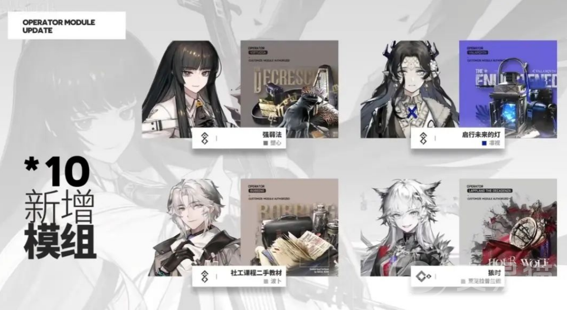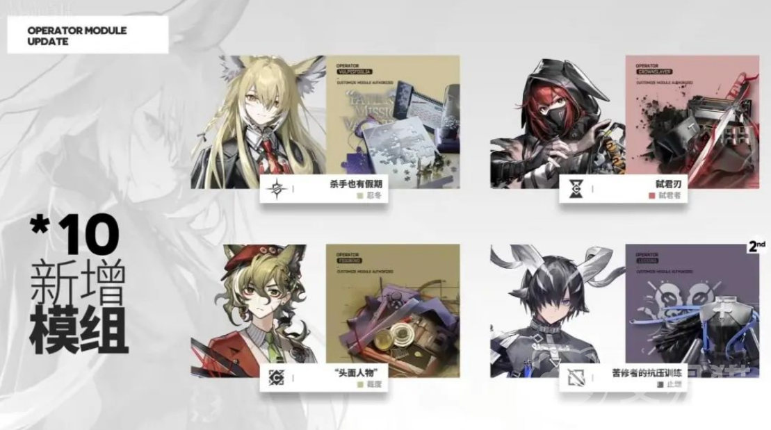 周年庆活动还增加了大量模组,其中巫役子职业获得了新模组,而异格拉普兰德、忍冬和弑君者更是自带模组加入战场。值得一提的是,止颂即将迎来她的第二模组,进一步提升了她的作战能力。此外,洁哥和迷迭香还将迎来肉鸽模式的专属模组,为喜欢肉鸽挑战的玩家带来了更多选择。