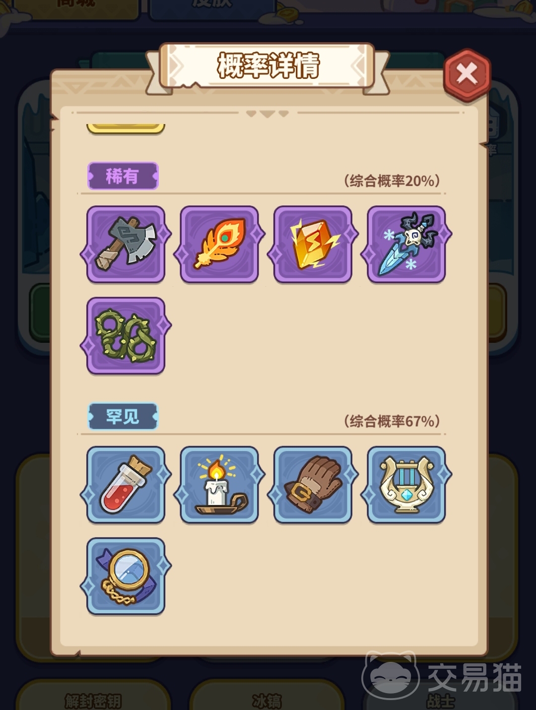 游戏中的收藏品有多个品质,其中橙色神话品质和黄色传说品质的收藏品获得概率较低,紫色稀有品质和蓝色罕见品质的收藏品爆率还可以,玩家获得的可能性还是较大的。
