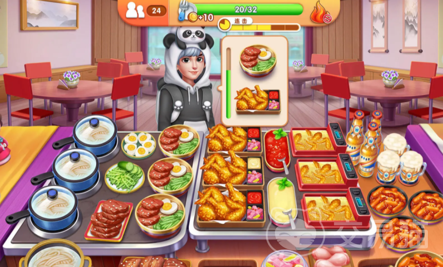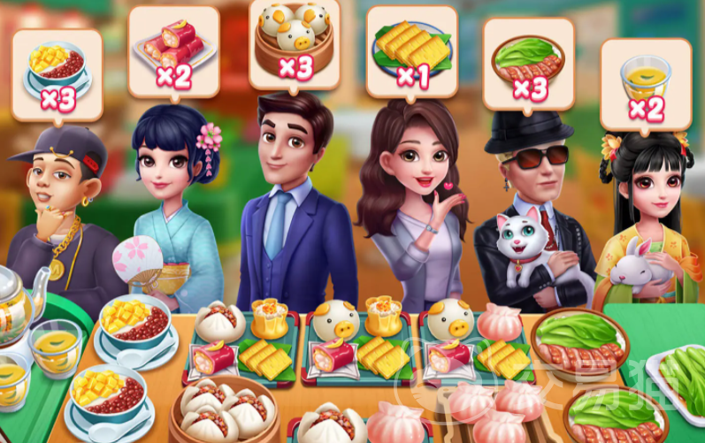 游戏里的大部分食物都已经是成品和半成品,玩家只需要根据顾客的点餐及时出餐就可以,每一个顾客都会有一定的耐心,只需要在耐心的消耗完毕之前让他们顺利得到自己想要的食物,每一家餐厅都会有不同的主题,不管是海鲜烧烤还是各种甜点类型的餐厅玩家都有机会亲自经营。