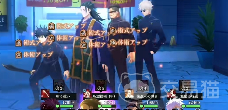 而当五条悟处于术式提升状态时,他的二技能会发生改变,变为术式公开,这一技能赋予自身造成伤害提升持续四回合最高80%,以及暴击率提升30%,同样持续四回合,提升几乎可以达到接近100%的暴击率,需要注意的是,虽然术式公开的持续效果有四回合,但玩家在实际使用时需要注意buff的叠加和容错,一般来说,玩家会在buff叠加满三次后再释放技能,以达到接近100%的暴击率。