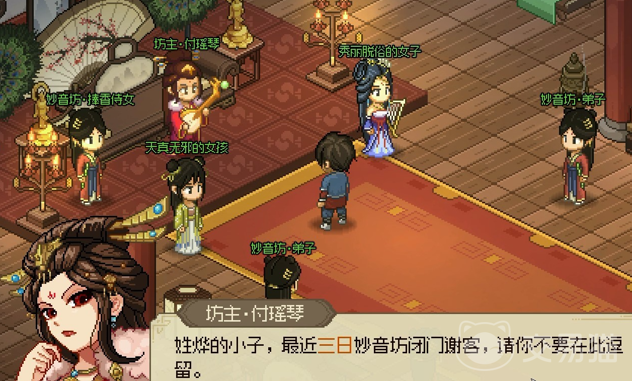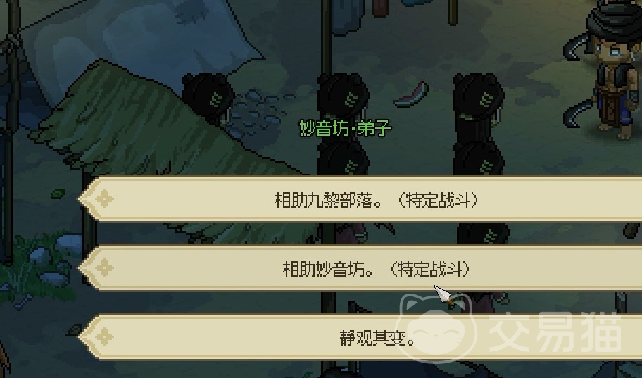 玩家首次进入荒废庭院的时候能看到妙音坊与九黎部落在起冲突,这里选择帮助妙音坊后能得知妙音坊的位置,接着通过小地图来到妙音坊,因为之前帮助过他们一次所以可以直接进入,进屋里后会发现里面有很多入侵的九黎部落弟子,同样选择帮助妙音坊。