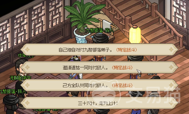之后可以触发剧情,在触发剧情之后,她会和玩家对话之后会弹出多个对话选项,弹出后大家需要选择,在选择时大家需要先选择莫管闲事在旁边看着,之后会有九黎部落的人出现。