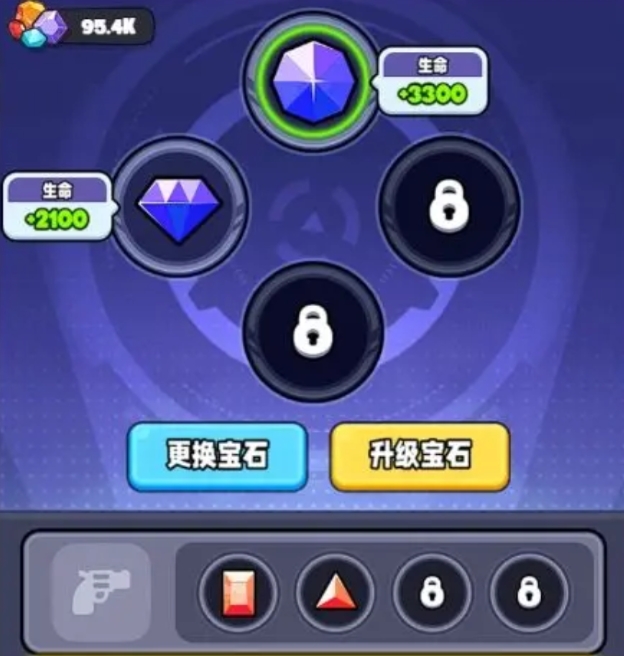 还有一种情况下,玩家也是需要更替宝石。游戏中玩家能获得多个武器,武器的资质和级别上也有区别,其中紫色品质的武器攻击力最强力。既然在武器上已经有足够的攻击力了,就靠宝石来提升角色的生命值了,也就是说需要提高血量或者是能帮助恢复血量的宝石了,反之玩家选择的武器有足够的防御值了就选择增加暴击值的宝石。