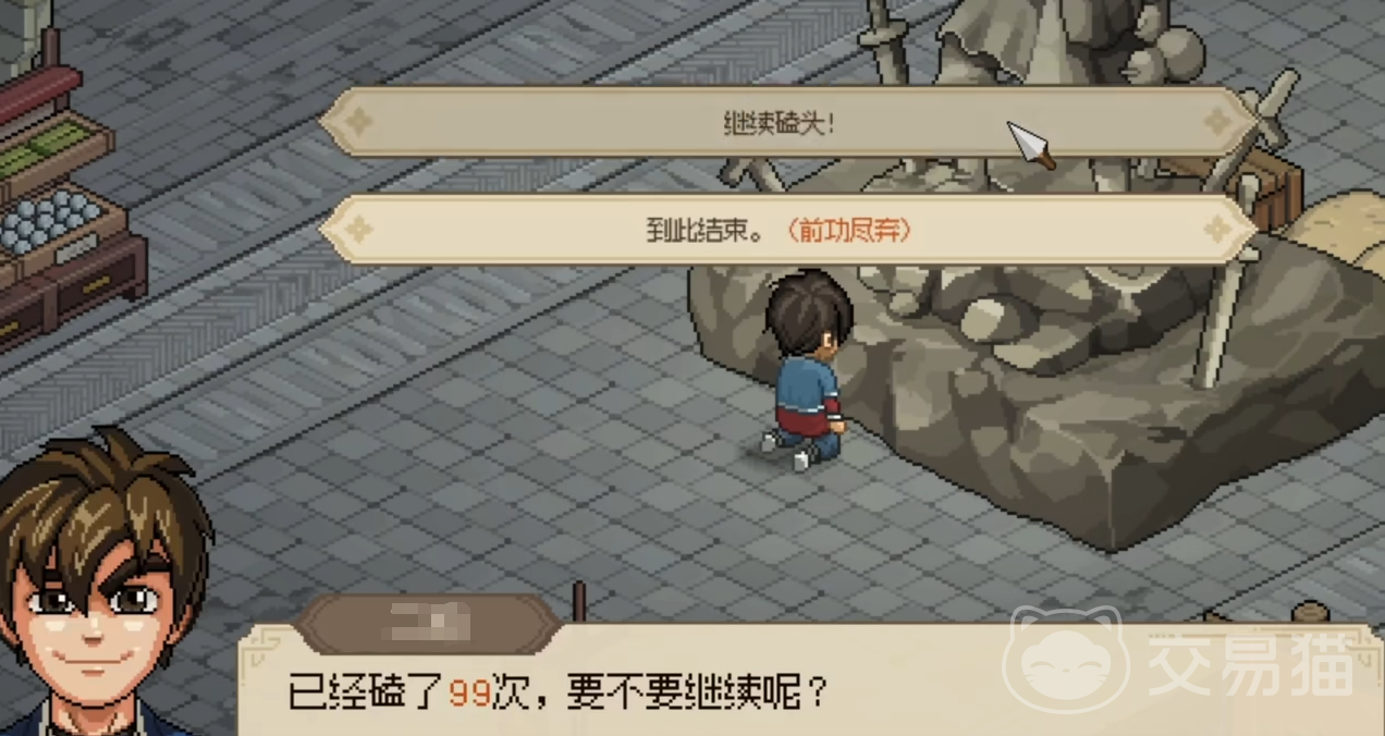 玩家们在到达楚襄城的时候可以看到城中有一个很大的石像,这个石像是一个彩蛋,之后我们和石像进行交互会出现磕头的选项,这个是游戏内一个很有趣的事件,首先是如果磕头满100次的话,那么玩家们便可以获取到一把紫色的大石剑,这把武器在前期很强,不仅武器威力高,同时还拥有一击致命。