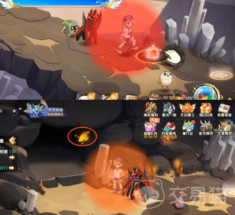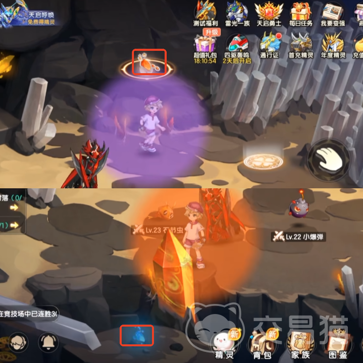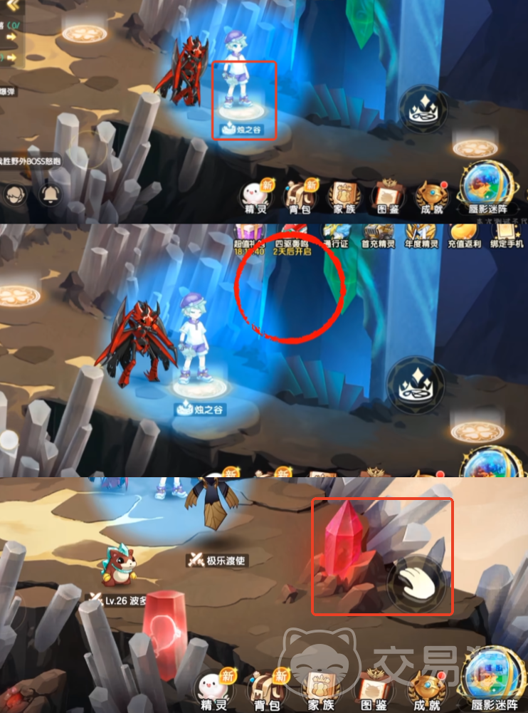 先去上面那个进入场景后会有个怪物,靠近怪物身后触碰紫色碎片可以开启紫色水晶下方的路自身,在这里触碰红色碎片变成发红光,随着红光主角回到上一个地图,再从右边的传送门进入,这里也可以变成红光,也就是说之前出现的2个传送门最后目标都是为了可以发红光。