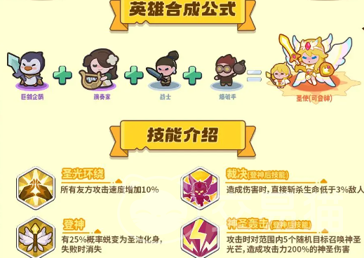 不过剑灵在清理小怪的方面非常一般,不能只靠剑灵其他英雄都不要,大家也可以选择天使,天使合成简单不需要金色英雄,而且登神后极为强大,一局中只要登神成功,就能带给玩家不小的助力,虽然到了后期天使的重要性不高,但是能帮助我们渡过前期的“危险期”,而且如果本场排位赛天使是那位至尊英雄,那么还会提升登神的成功率,让天使更加强大。