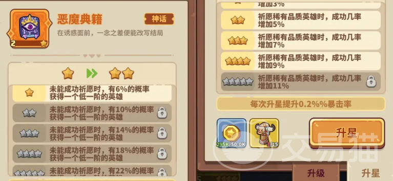 重复上述步骤,直到登神发成功,出现大天使。有藏品保险箱与黄金锤的,在出大天使后可以不急着去消耗银币,可以攒波数,消耗幸运币来提升神话英雄的等级,先强满概率等级再召唤,玩祈愿登神流一般银币挺多,概率等级升满通常也有剩余,一边银币召唤英雄,一边幸运币升神话英雄等级。视情况召唤天使、鳄霸、以及其他的辅助,只要不是特定合成路径的蓝白英雄都可以卖掉。金色英雄除了可以用来合成鳄霸的牛头,奇遇的都可以卖掉,毁灭装置如果有1组的话可以留。